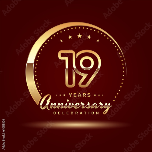 Fototapeta premium 19 year anniversary celebration logo design with a number and golden ring...