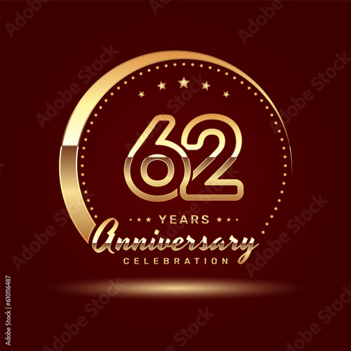 Fototapeta premium 62 year anniversary celebration logo design with a number and golden ring...