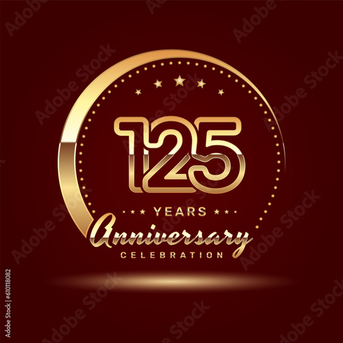 Fototapeta premium 125 year anniversary celebration logo design with a number and golden ring...