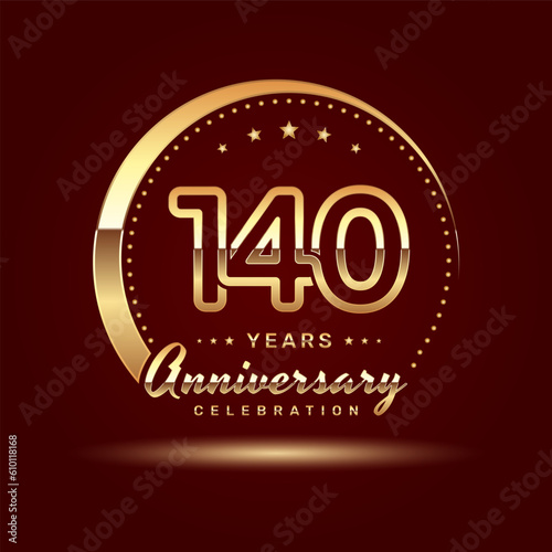 Fototapeta premium 140 year anniversary celebration logo design with a number and golden ring...