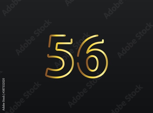 Fototapeta premium 56 Year Anniversary celebration number vector, modern and elegant golden design. Eps10 illustration