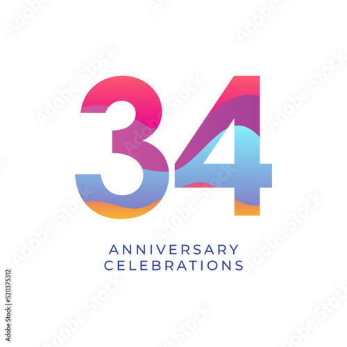 © mz nu, Obraz premium 34 year anniversary design template. vector template illustration