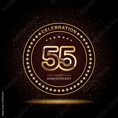 Fototapeta premium 55 year anniversary logo design with double line numbers in gold color, vector template