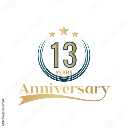 Fototapeta premium 13 Year Anniversary Vector Template Design Illustration. Gold And Blue color design with ribbon