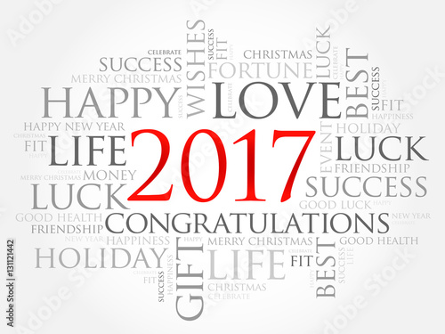 Obraz premium 2017 year greeting word cloud collage, Happy New Year celebration greeting card
