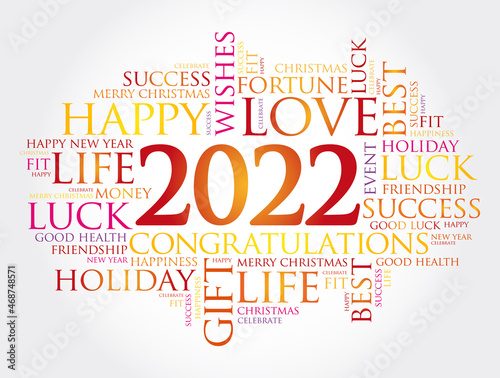 © dizain, Obraz premium 2022 year greeting word cloud collage, Happy New Year celebration greeting card