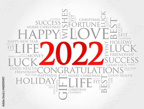 © dizain, Obraz premium 2022 year greeting word cloud collage, Happy New Year celebration greeting card