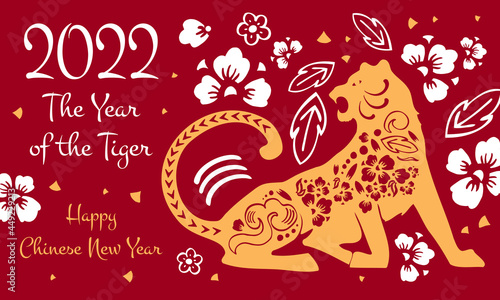 © Alexandra, Fototapeta premium Year of the Tiger. Traditional papercut illustration. Chinese New year design template. Hand drawn vector graphic