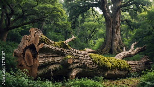 © pngking, Fototapeta premium 400-year-old damaged oak tree in the forest