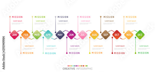 Fototapeta premium Year planner, 12 months, 1 year, Timeline infographics design vector and...