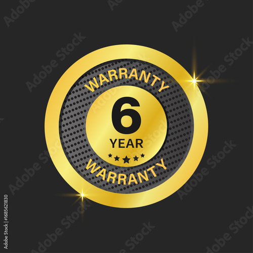 Fototapeta premium 6 year warranty golden logo, premium seal, luxury certificate emblem, Six...