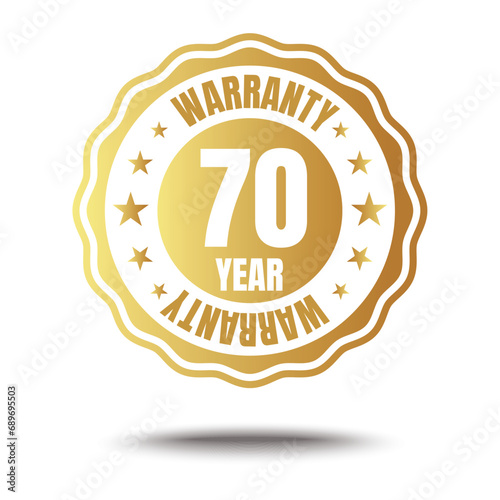 © aphichato, Fototapeta premium 70 year warranty logo with golden shield and golden ribbon.Vector illustration.