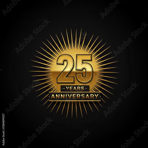 Fototapeta premium 25 years anniversary celebration design with golden emblem on black background