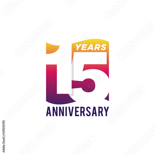 © fafostock, Naklejka premium 15 Years Anniversary Celebration Icon Vector Logo Design Template. Gradient Flag Style.