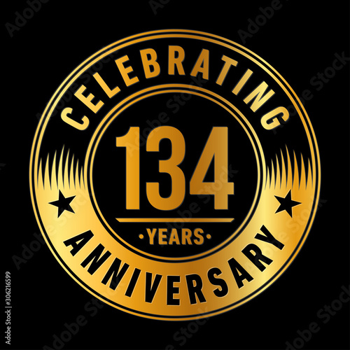 © JohnyBlack, Fototapeta premium 134 years anniversary celebration logo template. One hundred thirty four years vector and illustration.