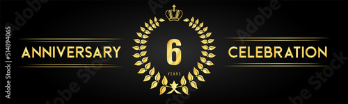 Naklejka premium 6 years anniversary celebration logo with laurel wreath and royal crown...