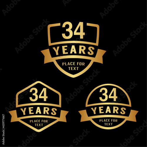 © JohnyBlack, Naklejka premium 34 years anniversary celebration logotype. 34th anniversary logo collection. Set of anniversary design template. Vector illustration.