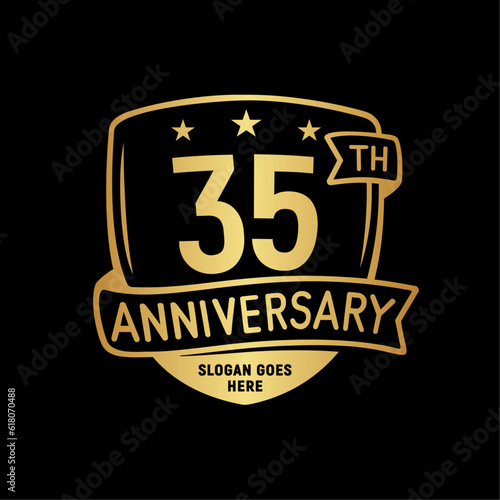 © JohnyBlack, Fototapeta premium 35 years anniversary celebration shield design template. 35th anniversary logo. Vector and illustration.
