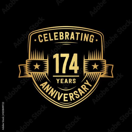 Fototapeta premium 174 years anniversary celebration shield design template. Vector and...