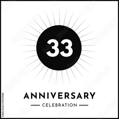 Fototapeta premium 33 years anniversary celebration with starburst isolated on white background. Creative design for happy birthday, wedding, ceremony, event party, award, invitation event, and greeting card.