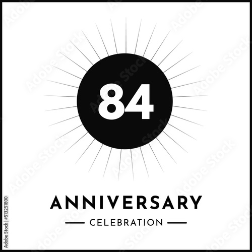 Obraz premium 84 years anniversary celebration with starburst isolated on white background. Creative design for happy birthday, wedding, ceremony, event party, award, invitation event, and greeting card.