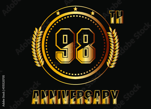 Fototapeta premium 98 years anniversary. Gold vector with rings for 98 years anniversary celebration on black background.