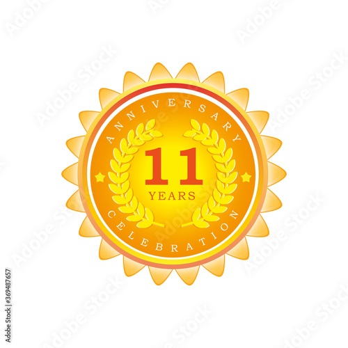 © Tahyuddin, Fototapeta premium 11 Years anniversary Golden badge logo. Vector illustration for your emblem design