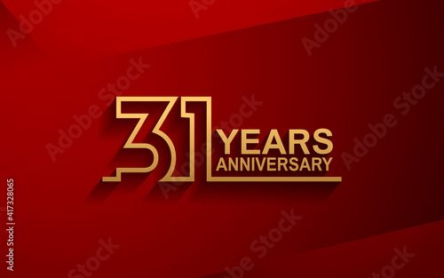 Fototapeta premium 31 years anniversary line style design golden color with elegance red background for celebration