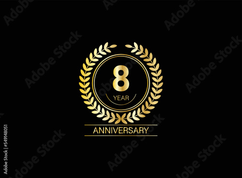 Naklejka premium 8 years anniversary logo. Vector and illustration. gold anniversary logo.