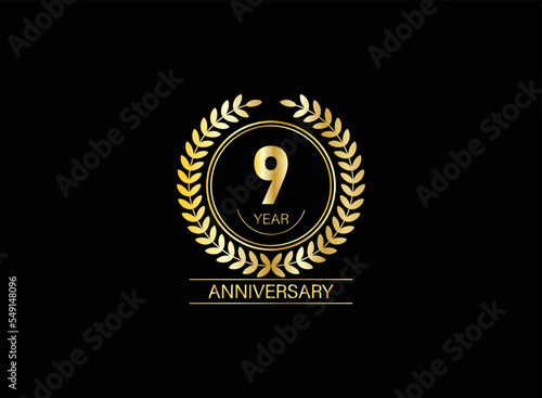Fototapeta premium 9 years anniversary logo. Vector and illustration. gold anniversary logo.