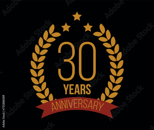 © BOROFOTOS, Fototapeta premium 30 Years anniversary. Luxury bronze laurel, birthday celebration and commemorative banner