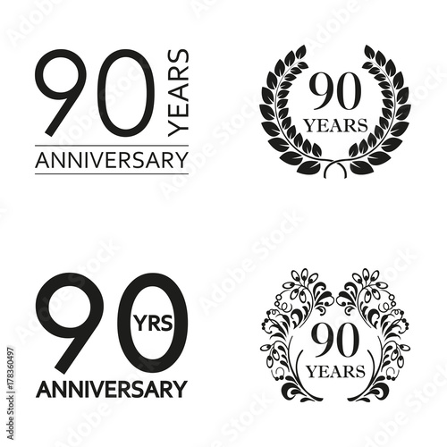 Obraz premium 90 years anniversary set. Anniversary icon emblem or label collection. 90 years celebration and congratulation decoration element. Vector illustration.