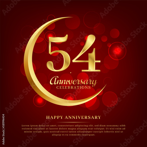 Naklejka premium 54 years anniversary with golden moon and red shiny background added with...