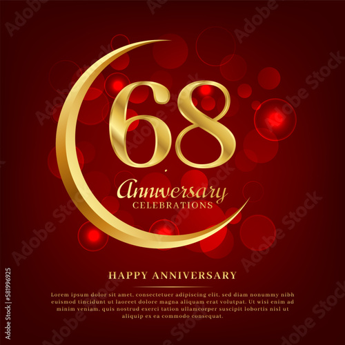 © mirvan, Naklejka premium 68 years anniversary with golden moon and red shiny background added with text for congratulations words