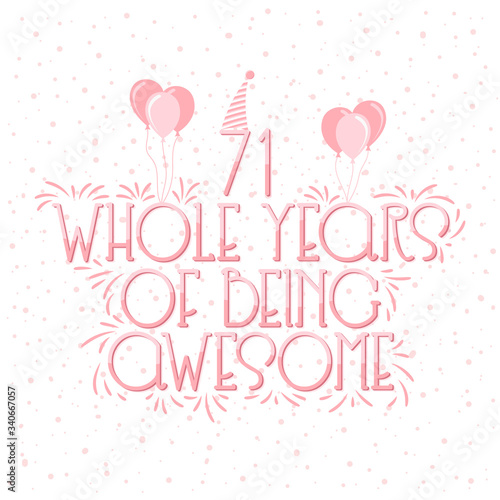 Naklejka premium 71 years Birthday And 71 years Wedding Anniversary Typography Design, 71 Whole Years Of Being Awesome.