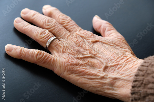 Fototapeta premium 80 years old woman's hand, old human hand with veins