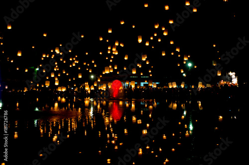 © Oran Tantapakul, Naklejka premium yee peng , Floating lanterns festival in Chiang mai Thailand
