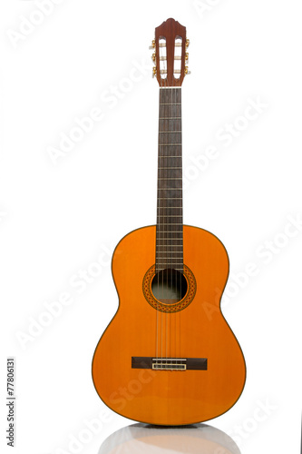 © Mediteraneo, Fototapeta premium Yellow acoustic guitar on a white background
