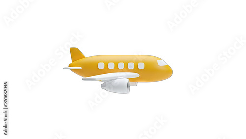 © fadil, Fototapeta premium Yellow Airplane Flying on White Background