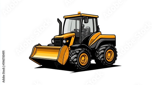 © kucret, Naklejka premium Yellow and black tractor with a bulldozer blade, isolated on white background.