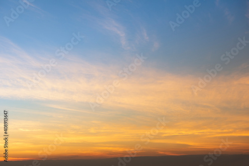 Obraz premium Yellow and blue sky background, Colorful sky sunrise or sunset with cloud...