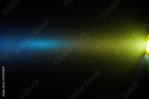 © andreyfire, Obraz premium Yellow and blue transitional gradient light beam on black background