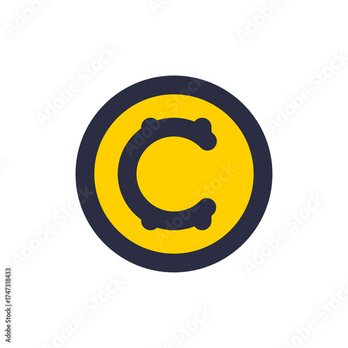 © masrurotul, Fototapeta premium Yellow and Dark Blue Circular Letter C Design on Transparent Background Line Color Crypto CS6-22 Style Graphic Element for Creative Projects