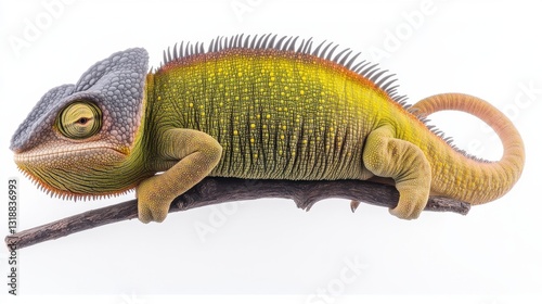 © Krungpol, Obraz premium Yellow and Gray Chameleon on Branch Close Up