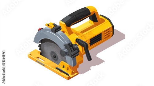 © Nurul, Obraz premium Yellow and grey isometric circular saw with a safety guard on a white background