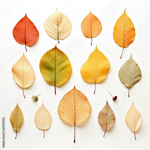 Obraz premium yellow and orange Fall leaves separated in a season change-themed,...