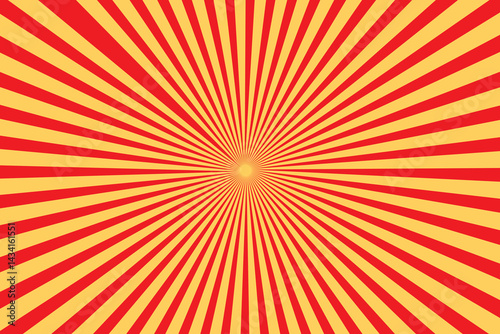 Fototapeta premium Yellow and red banner with Sun rays, yellow comic background. Sunburst...
