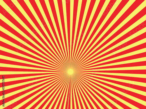 Fototapeta premium Yellow and red banner with Sun rays, yellow comic background. Sunburst...