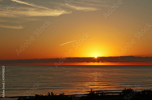 © Nacho, Fototapeta premium Yellow and red sunrise on the beach, sea landscape