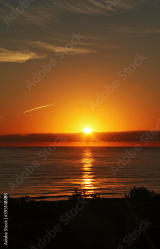 Fototapeta premium Yellow and red sunrise on the beach, sea landscape